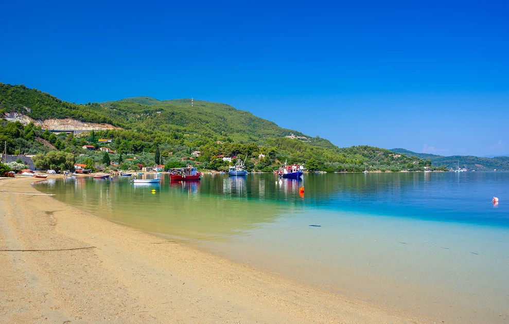 Located near the North Evia Gulf and the Aegean Sea, the region offers stunning beaches with crystal clear waters and turquoise shores that are ideal for relaxation and swimming.